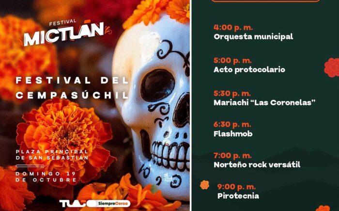 Durante la jornada se podrá disfrutar de un programa lleno de actividades para toda la familia, con música en vivo, presentaciones artísticas, talleres infantiles, un corredor artesanal y una feria gastronómica con platillos típicos de la zona, como el atole de cempasúchil y el pan de muerto decorado con flores.