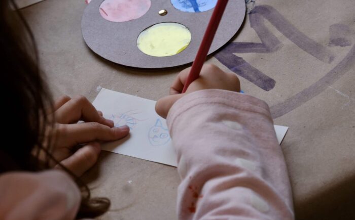 La propuesta, impulsada por la Dirección de Educación del recinto, giró en torno a un detalle poco explorado del conjunto mural: las figuras mecánicas que habitan la obra de Orozco. A partir de una observación guiada, el equipo educativo invitó a las infancias a preguntarse cómo un personaje rígido, metálico, puede sugerir tensión, introspección o energía.