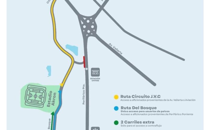 Para agilizar la movilidad en el estadio Akron, se aplicará a través de la Comisaría Vial, una serie de ajustes en los desplazamientos –sólo en el sentido de ingreso– cuando se celebren eventos masivos, como partidos de futbol o conciertos.
