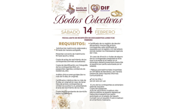 El presidente municipal de Bahía de Banderas, a través del Registro Civil y el Sistema DIF, invitan a las parejas…